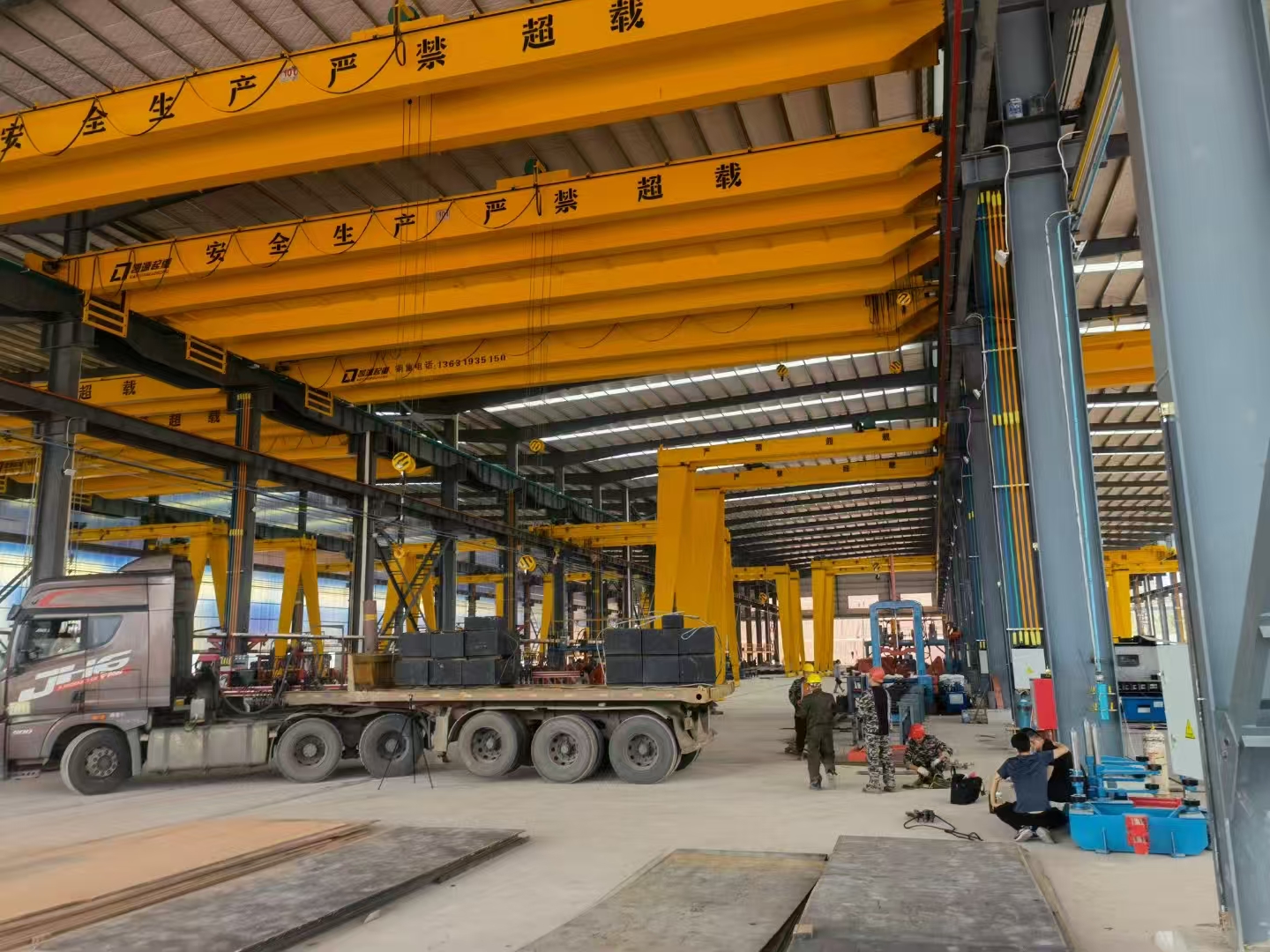 焙燒多功能天車主要有哪些用途?焙燒多功能天車主要安裝在炭素陽極焙燒車間,是作為焙燒爐生產與檢修用的多功能起重設備。它一般主要用來完成以下各項作業。 1、利用陽極夾具把鏈式輸送機上的生炭塊夾住,然后送往焙燒爐的爐坑,進行裝爐作業。2、利用吸料管從焙燒爐坑內吸取填充料,然后進行粉塵分級作業。3、利用補充吸料管進行煙道內的清掃工作以及粉塵的定期排除作業。4、利用起重電葫蘆進行焙燒爐的維護保養工作。 5、利用卸料管把料箱內的填充料添加到焙燒爐的爐坑內。6、利用陽極夾具把焙燒爐坑內的熟塊夾住,然后運往鏈式輸送機上,進行出爐作業。7、利用起重葫蘆進行燃燒器裝置的搬運作業。8、往料箱內填加新的填充料等等。以上就是焙燒多功能天車一些主要用途,總之是功能較多的一類起重設備,凱源起重專業生產優質焙燒多功能天車,性價比更高,歡迎大家咨詢。